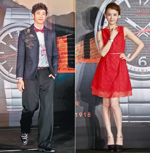 ▲陳意涵(右)近來宣傳電影及新書,因個性有話直說,話題不少。劉以豪穿中國風的西服走秀,展露貴族王子氣質。